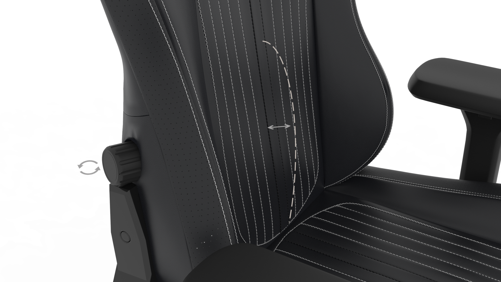 Lumbar Support can be easily customized using a side-mounted rotary dial. Easily adjust for a